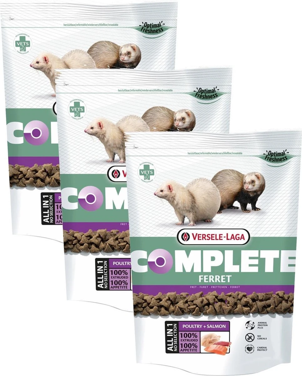 Versele Laga Complete Ferret is voeding zonder zorgen. De bijzonder smakelijke All in 1 korrel voorkomt selectief eetgedrag. Zo krijgt je fret alle essentiële voedingsstoffen binnen en blijft het kerngezond. De granen en gluten vrije voeding bevat 90% eiwit van dierlijke origine voor een optimale vertering en conditie. De toegevoegde taurine draagt bij aan een goede werking van de hartspier. Versele Laga Complete Ferret is ontwikkeld door dierenartsen gebaseerd op geavanceerde wetenschappelijke inzichten.br /-All-in-one – geen selectief eetgedrag mogelijkbr /-Zonder granen en met 40% taurinerijke dierlijke eiwitten (kip, eend, kalkoen) en zalmbr /-Bevat o.a. Yucca om geurtjes te vermijden
