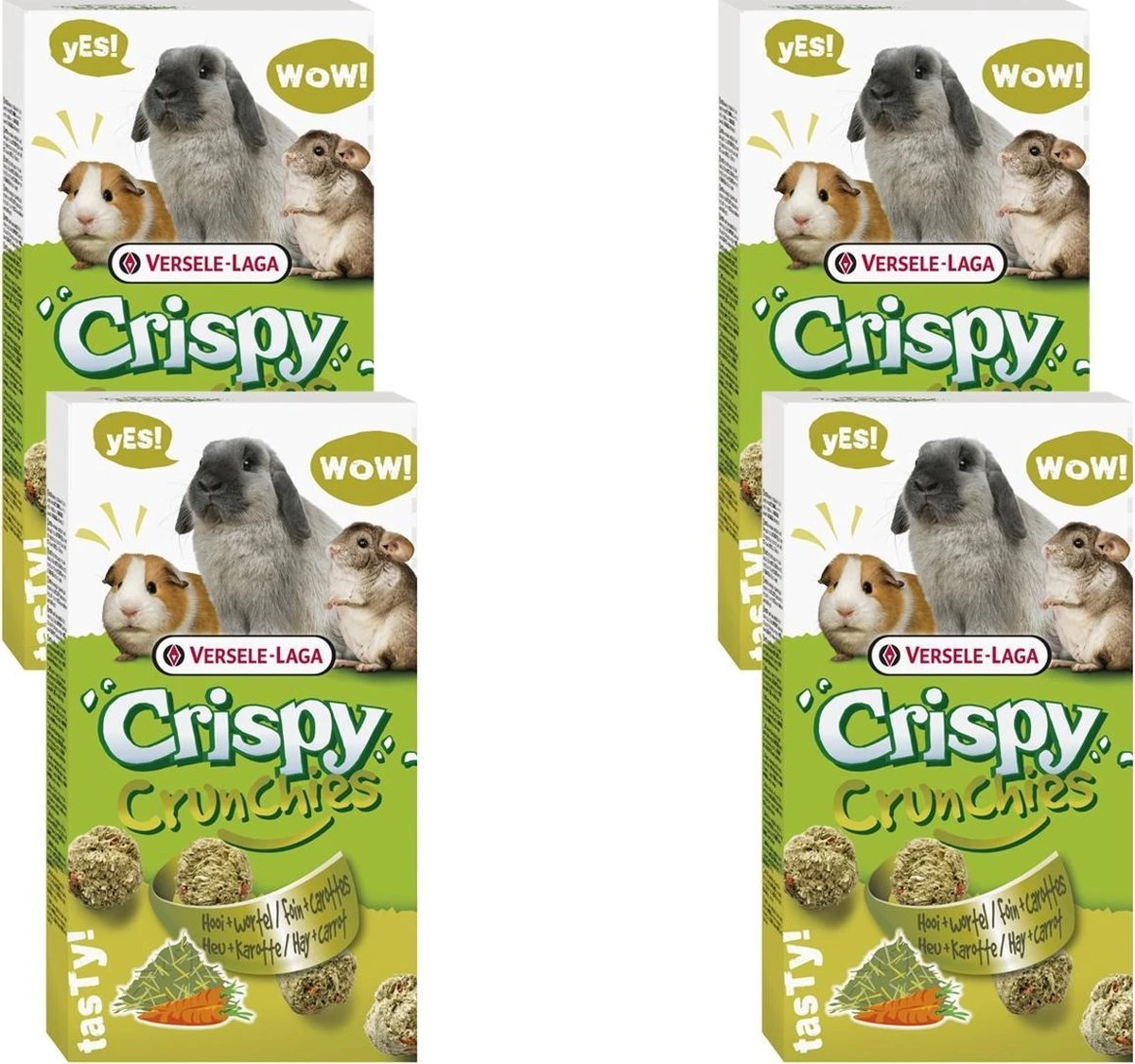 Versele-Laga Crispy Crunchies hooi en groenten is een lekkere snack voor je konijn en/of knaagdier. Het geeft tevens een aanvulling op het voer. Deze koekjes zijn luchtig en dragen bij aan de conditie van je knaagdier. Ook stimuleert het de vitaliteit. Met de smaken van appel, aardbei en ananas kan je konijn en/of knaagdier lekker genieten.br /-Luchtige koekjesbr /-Knapperig vers door versheidsverpakkingbr /-Vezelrijk