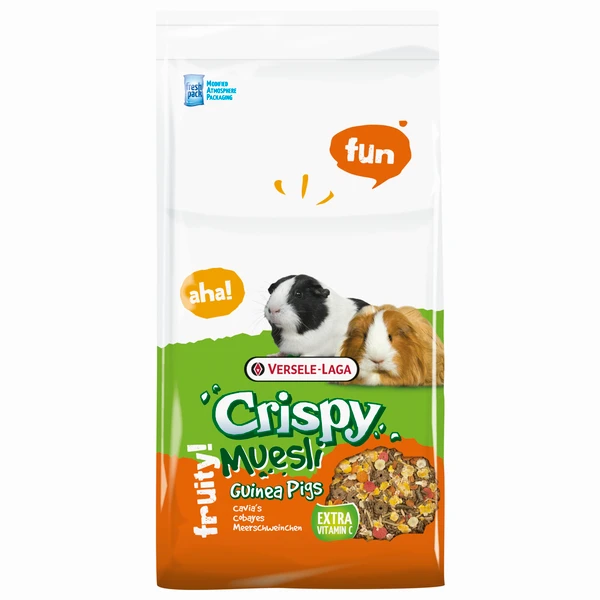 Versele-Laga Crispy Muesli Cavia’s – Caviavoer – 10 kg direct bestellen in onze webshop! De lekkere en vezelrijke Crispy Muesli Guinea Pigs voor cavia’s is een complete voeding. Met heerlijke hooistengeltjes, veel groenten en vlokken. Een gevarieerde mix voor lekkerbekken. Deze Crispy Muesli bevat dankzij de “Happy & Healthy” pellets alle voedingsstoffen die je cavia nodig heeft om gezond en gelukkig te leven. De vezelrijke samenstelling houdt bovendien de darmen en de tandjes in topvorm. Met extra vitamine C, want cavia’s kunnen net als mensen niet zonder.. Alle Versele-Laga Crispy voor uw Knaagdier uit voorraad leverbaar!