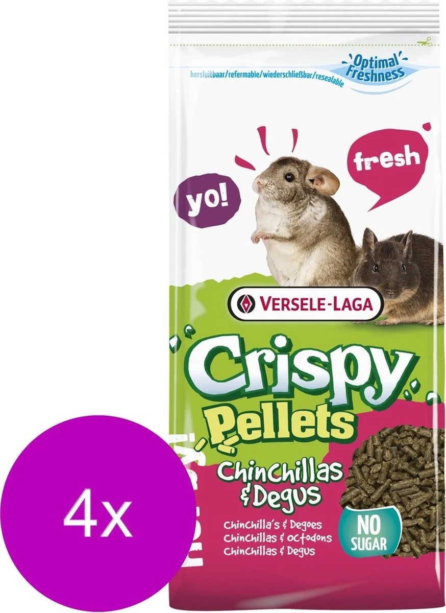 “Pellets chinchilla°u is een product van Versele-Laga Crispybr /-Een volledige korrelvoeding voor alle chinchilla’s en degoes.br /-Zonder granen, geen toegevoegde suikers en rijk aan kruidenbr /-Ze bevatten dankzij de “”Happy & Healthy””-mix in de korrels alle voedingsstoffen”