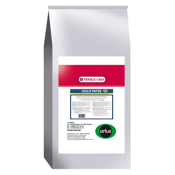 Versele-Laga Orlux Gold Patee Geel Profi – Vogelvoer – 25 kg direct bestellen in onze webshop! Orlux Gold Patee is een gebruiksklaar eivoer voor kanaries, tropische en inlandse vogels. Het is ook een aangename versnapering voor de huiskamervogel. Door toevoeging van 100% natuurlijke honing is Gold Patee bijzonder smakelijk en heeft het een hoge voedingswaarde. De extra toegevoegde lysine en methionine zorgen voor een optimale groei en vederopbouw. Ideaal tijdens kweekperiode voor een goede groei en vederopbouw.. Alle Versele-Laga Orlux voor uw Vogel uit voorraad leverbaar!