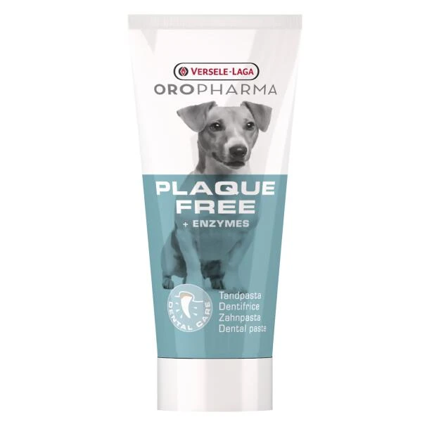 De verzorging van het gebit van je hond is even belangrijk als de verzorging van jouw eigen gebit. De Oropharma Plaqua Free tandpasta is speciaal ontwikkeld voor de hond, is lekker an smaak en bevat geen schadelijke stoffen.